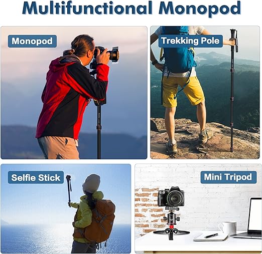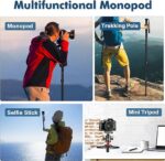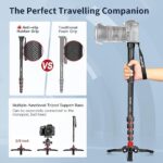 - [Monopode de Voyage Portatif] Livré avec un bracelet détachable et une base de support pliable de 3 pieds pour une portabilité facile. Utilisez un bracelet pour empêcher le monopode de tomber accidentellement pendant la prise de vue. La base peut être fixée séparément à un clip de téléphone et à la tête à bille pour une utilisation en tant que mini ou trépied de bureau autonome.