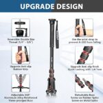 - [Jambe Rétractable & Angle Réglable] La jambe de torsion à verrouillage rapide avancée est verrouillée / déverrouillée à l’aide d’un quart de tour et peut être équipée d’un monopode unique en quelques secondes, entre 55 et 170 cm. L’inclinaison de 20 degrés de la base de support du trépied permet un angle de rotation panoramique réglable à 360 degrés pour répondre aux besoins quotidiens de tir.